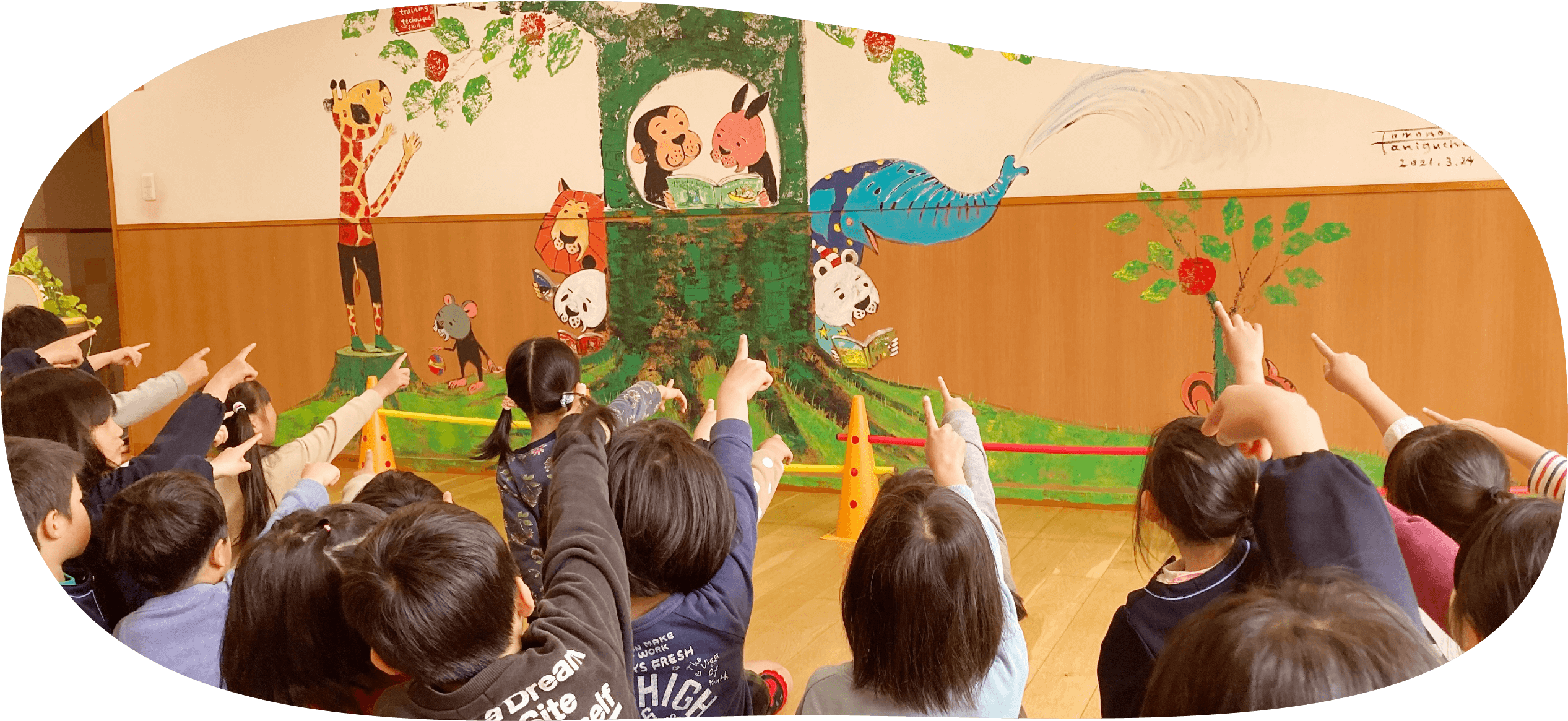人間という立派な幹を育て、大きな葉っぱを天高く広げ、花を咲かせ、収穫を得、さらにはそこから未来への種を生むためには、幼少期における土台づくりがいちばん重要であると考えます。こどもたちのためにわたしたちは土を耕し、水をやり、栄養を与えるような保育に取り組んでいます。答えは一つとは限りません。その答えがあるのかもわかりません。しかし、見えない根っこは着実に伸びている。そんな姿を目標としています。人は対立だけでは生きてゆけないものです。自然や社会との調和も大切です。てまりこども園ではそんな自然や社会とハーモニーを奏でられるよう集団生活をいとなみます。